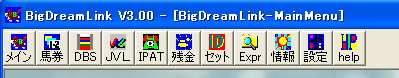 『BigDreamLink』は中央競馬用の実戦型競馬予想ソフトです。 レース当日はリアルタイムで予想ができます。「オッズ」・「馬体重」・「天候情報」・「レース成績」・「払戻金」なども・・・自動取得します。